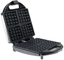- Waffle maker makes four thick Belgian waffles in four minutes